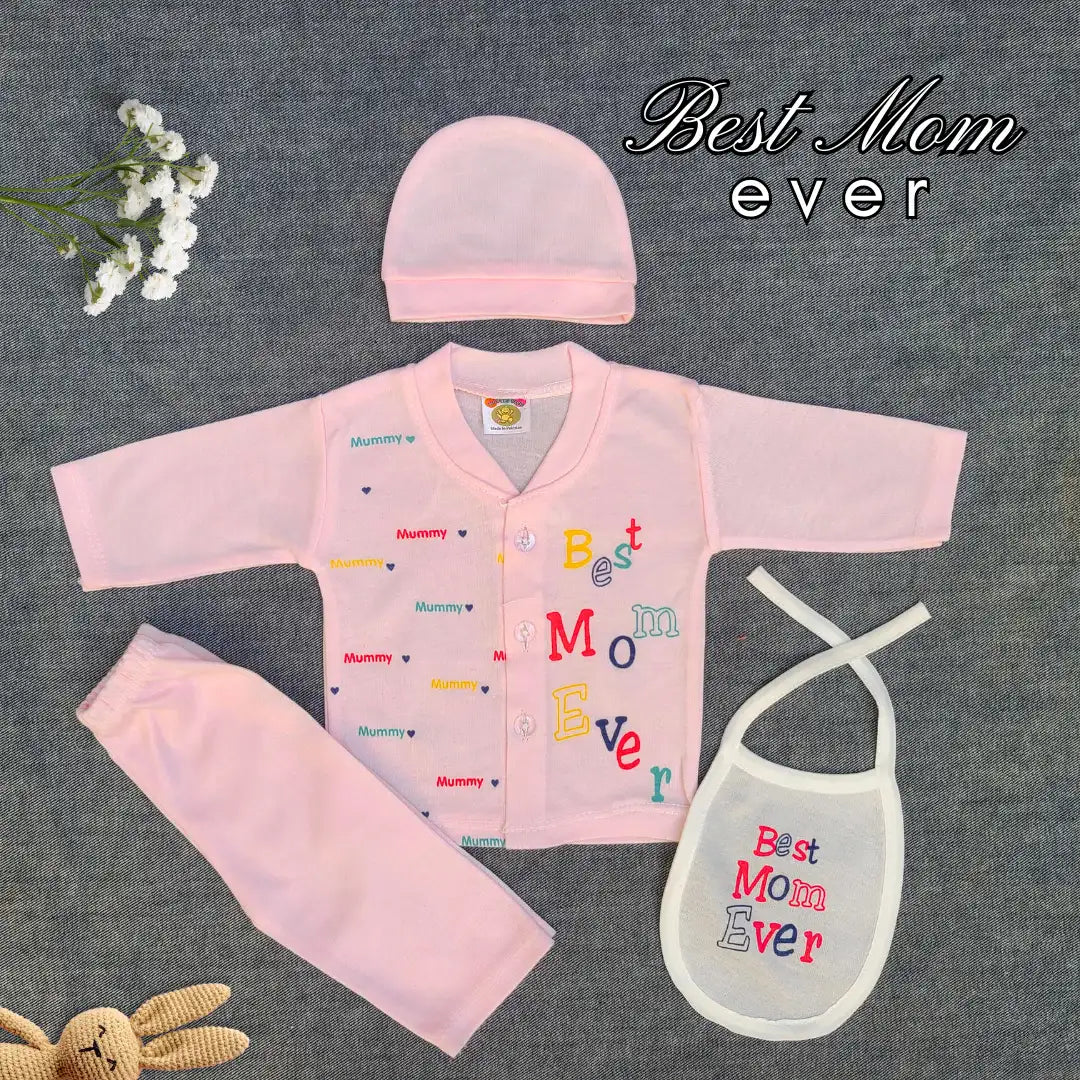 Best Mom Ever 4 Pcs Suit with Bib and Cap - Pink