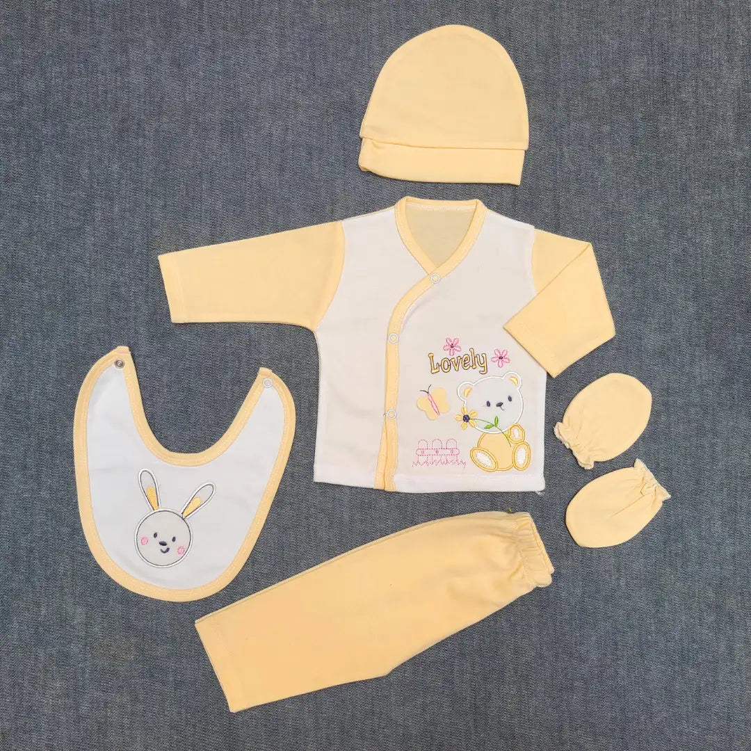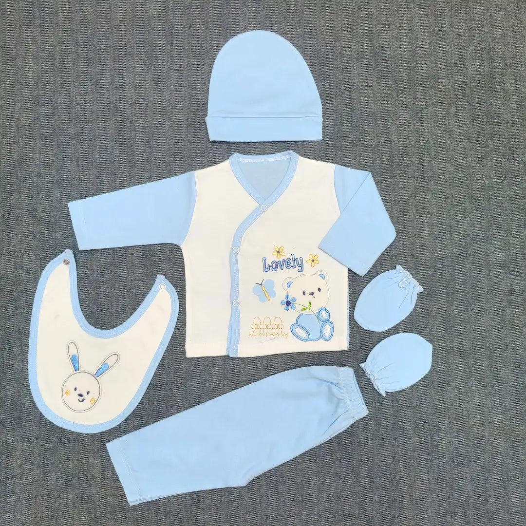 Wrap your little one in comfort and style with this Lovely Gift Set, thoughtfully designed to combine softness, functionality, and charm. Made from premium interlock fabric and featuring elegant "Lovely" embroidery, this 5-piece set is a perfect addition to your baby’s wardrobe or a thoughtful gift for new parents.